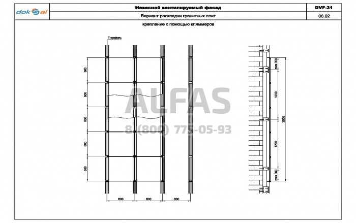 Серия DVF-31 предназначена для крепления гранита со скрытым креплением.