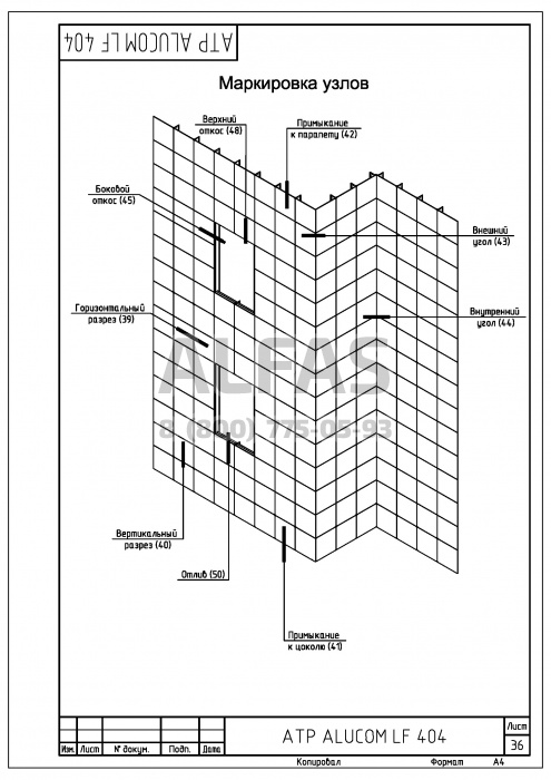 Alucom LF 404 можно использовать как в варианте с резиновыми уплотнителями, так и без них. Кляммеры могут, по желанию Заказчика, окрашиваться в цвет материала облицовки.